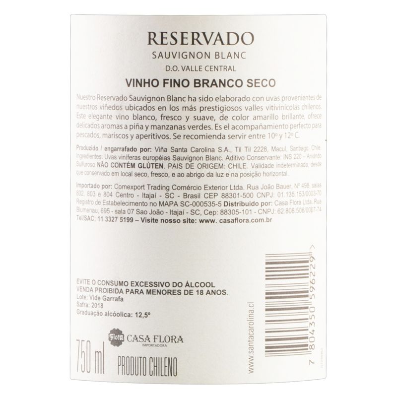 Vinho Chileno Santa Carolina Reservado Sauvignon Blanc 750ml – Frescor e Sabor em Cada Gole